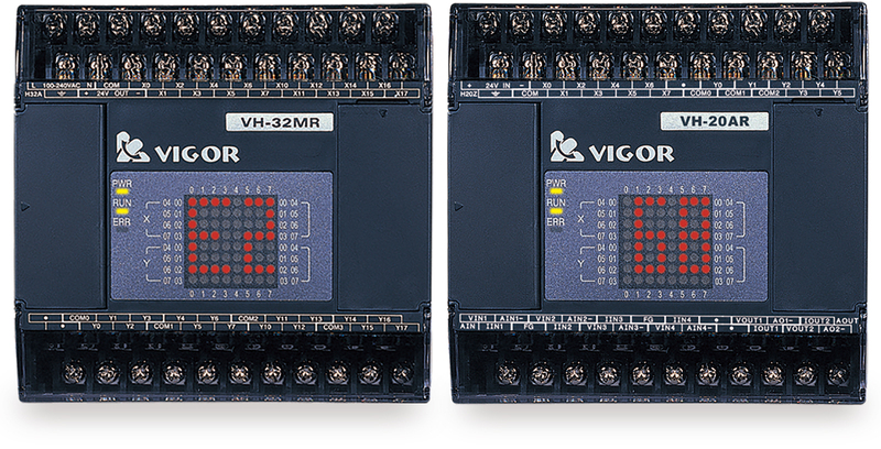 | VH-20MR | ![]() | VH主机 | AC电源输入,12点DC24V输入,8点继电器输出, 提供DC24V输出420mA | ||
